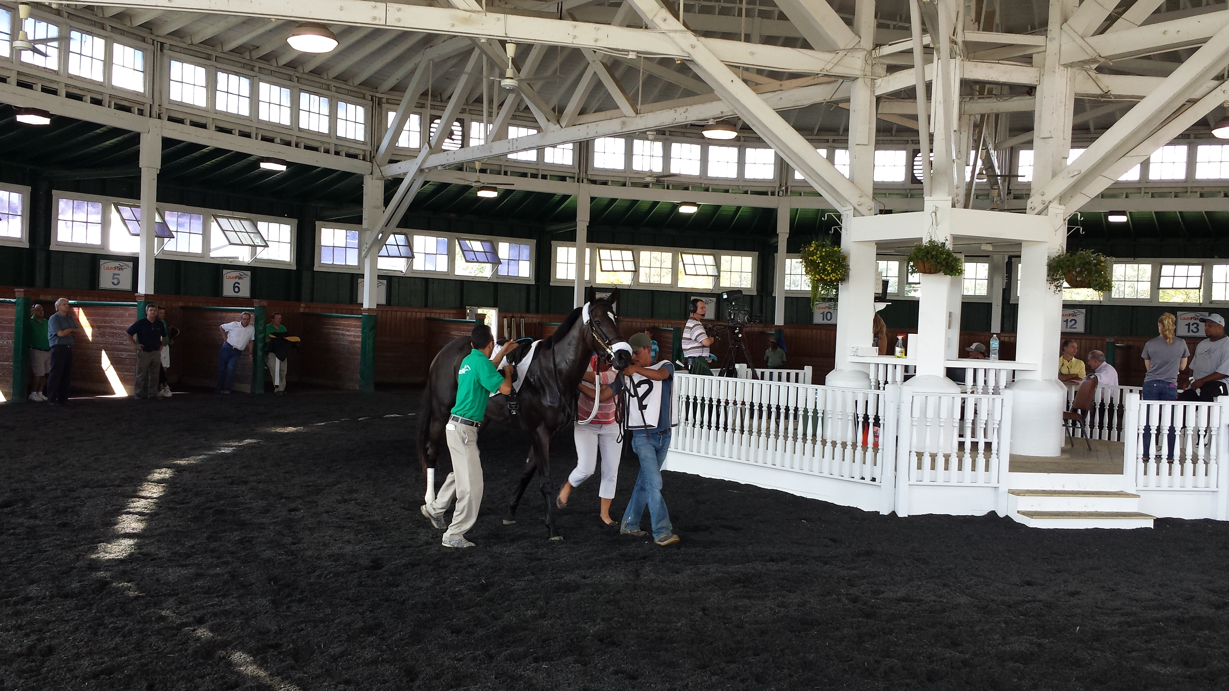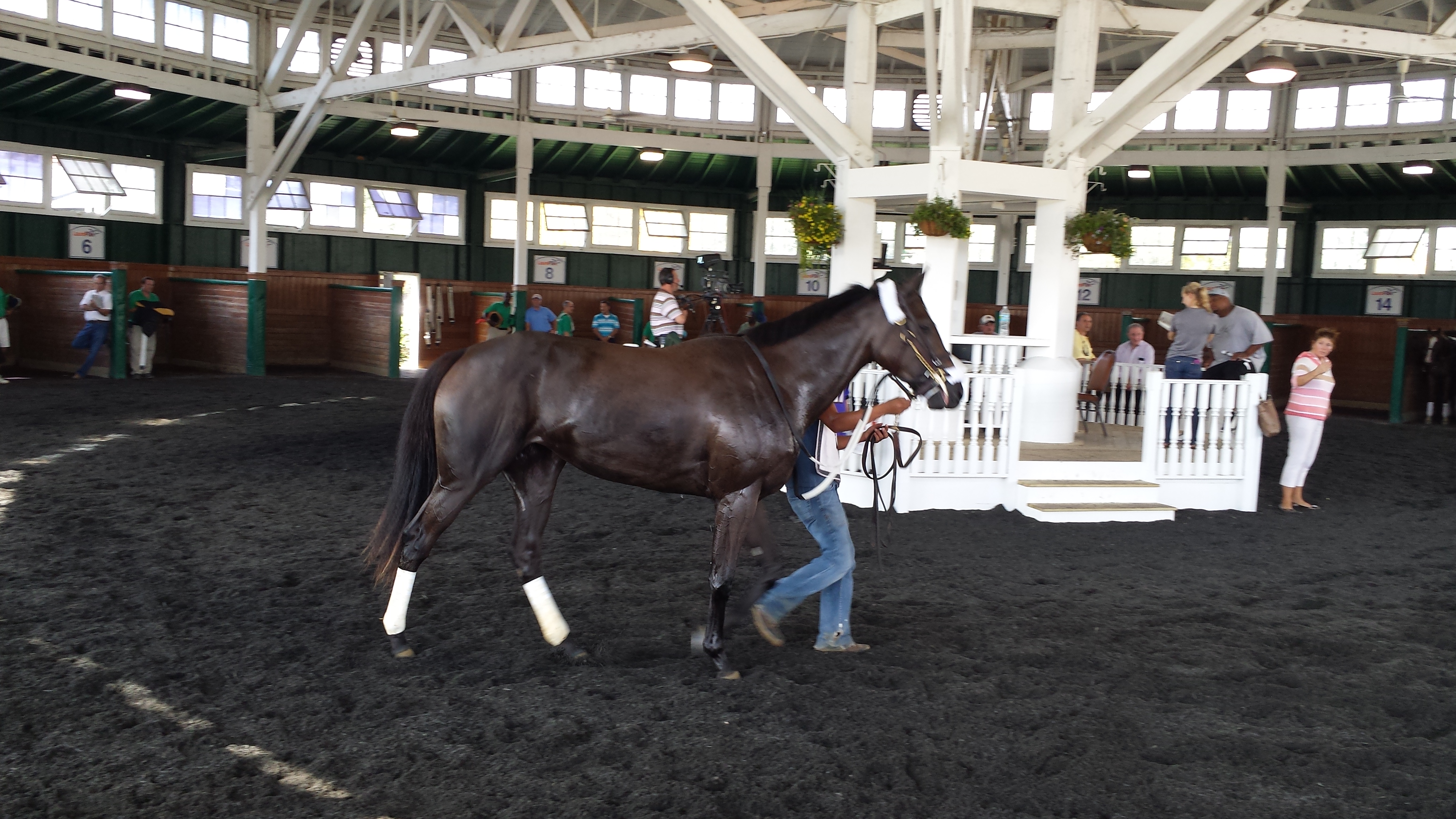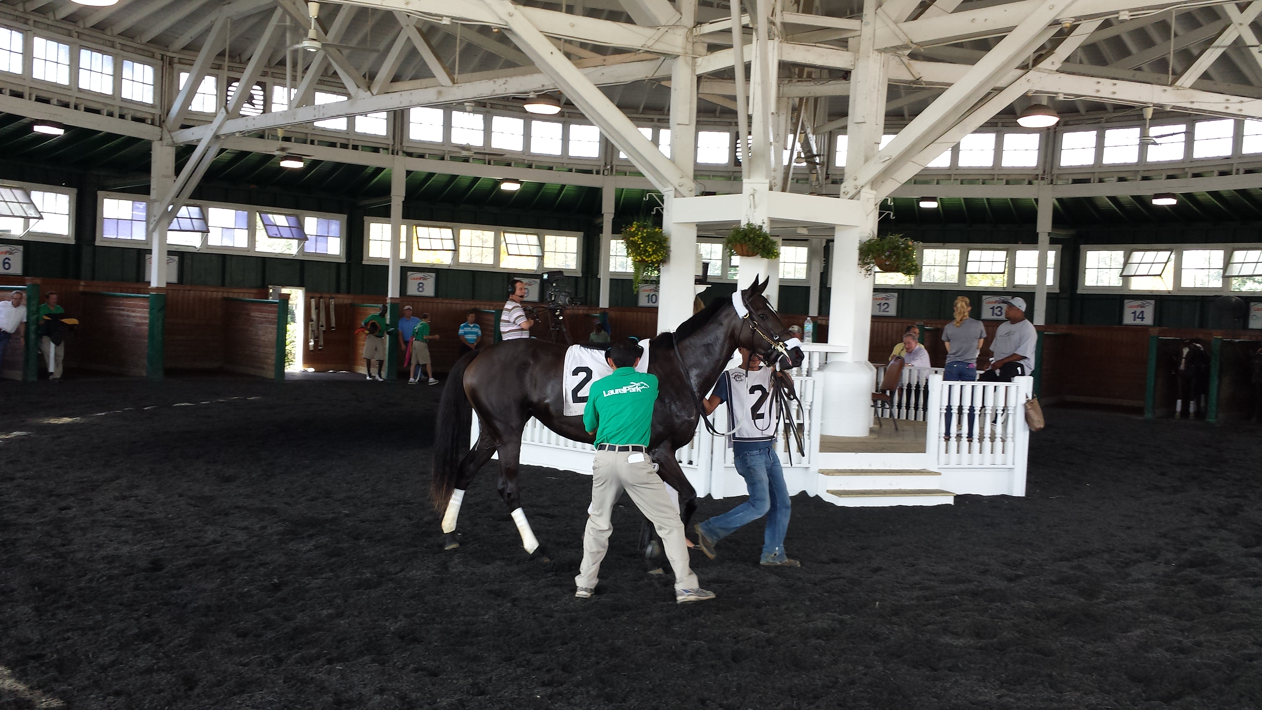 The assistant trainer who ran her got her to the paddock first. She had a few minutes there by herself to take things in. They saddled her on the move, which I think is because she has a tendency to kick the walls around her if she’s kept still. It looks really tough to get the saddle on correctly as the trainer and valet are running along beside the horse.