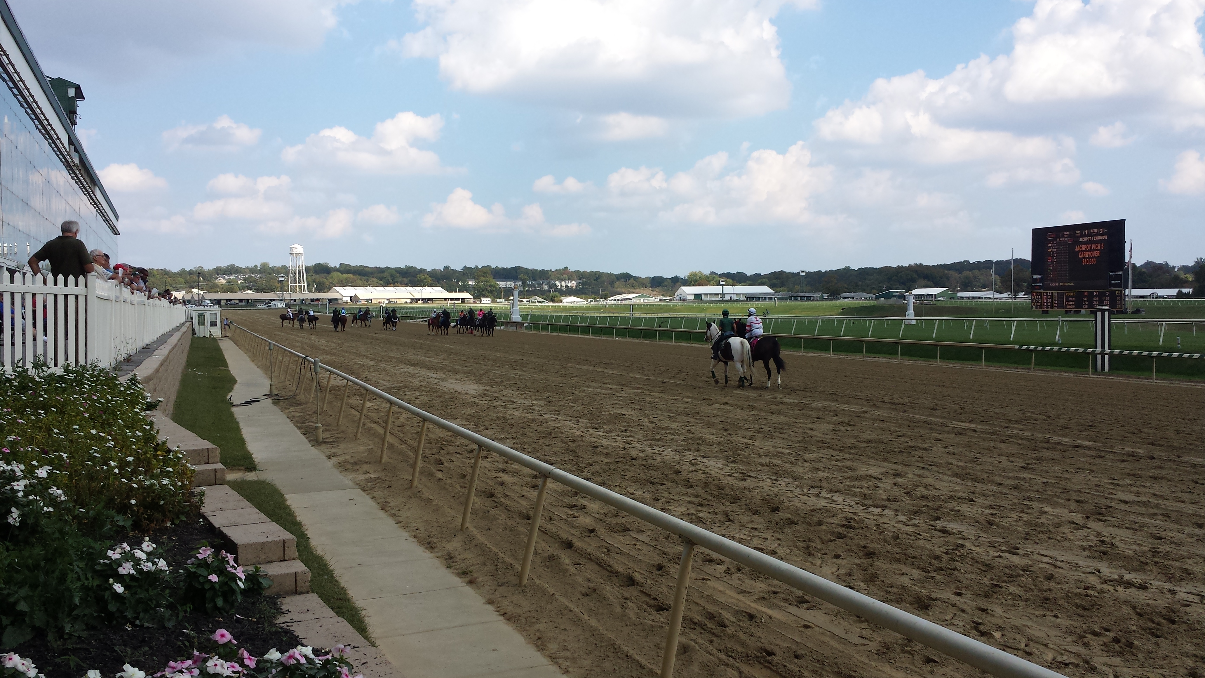 As they hit the straight-away (a very long straight-away), all of the jockeys were asking their horses for more speed. The #3 horse was in the lead coming out of the turn, and Sassy and the #10 horse both made a move to catch up. Sassy passed the #10 horse and was eating up the distance between her and the #3 horse. As they crossed the wire Sassy was still closing and she was just 3/4 of a length from winning.