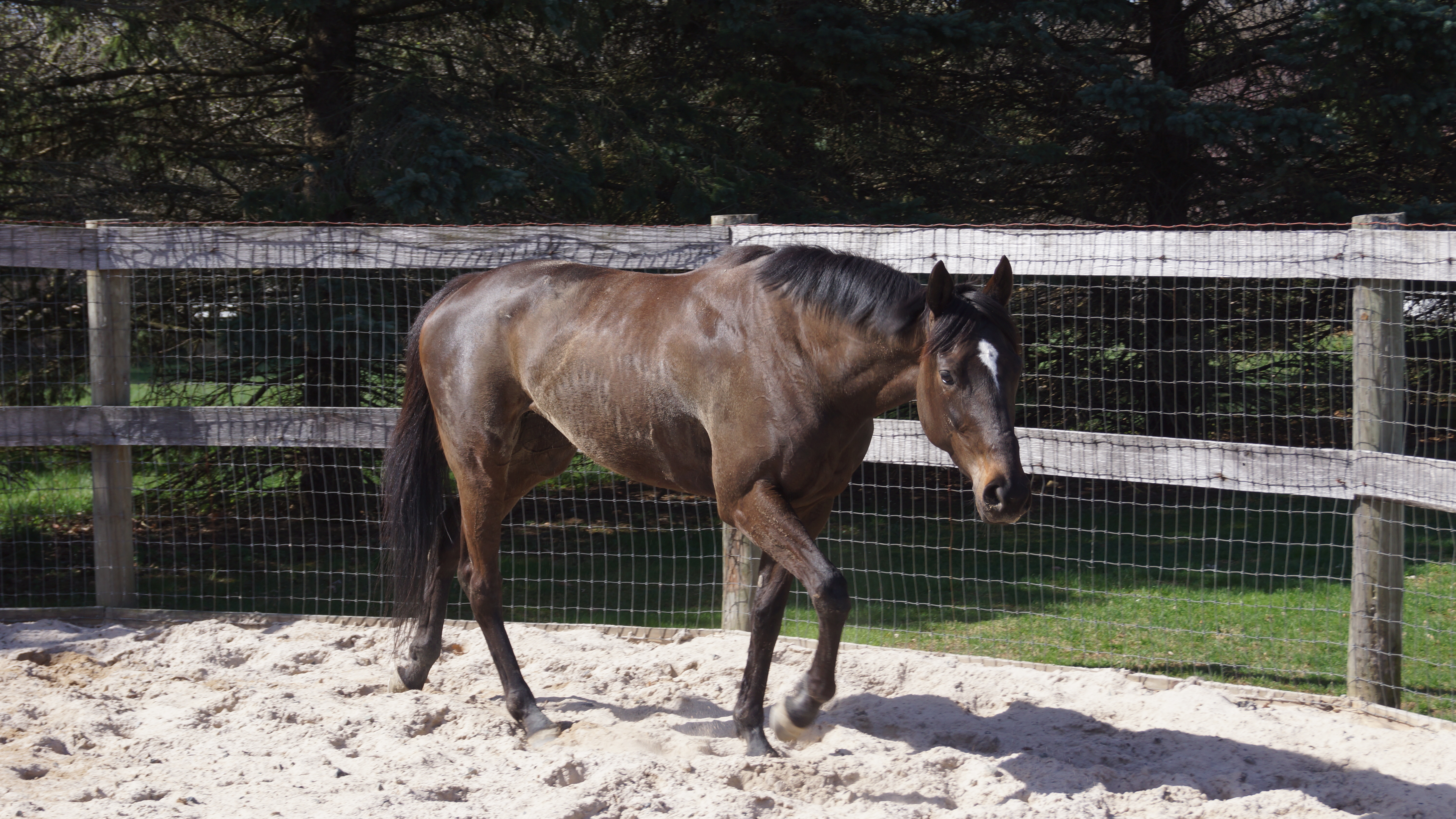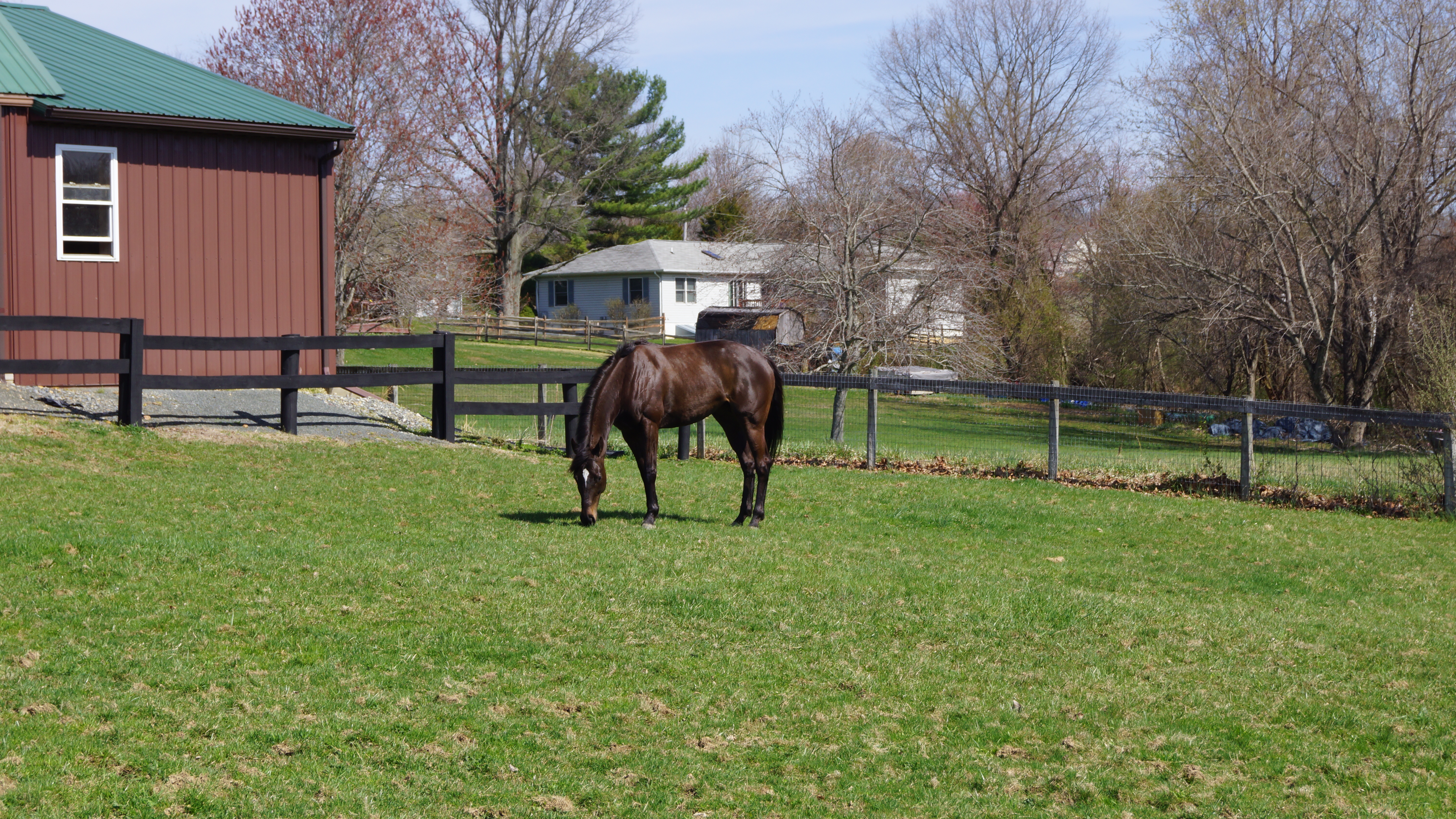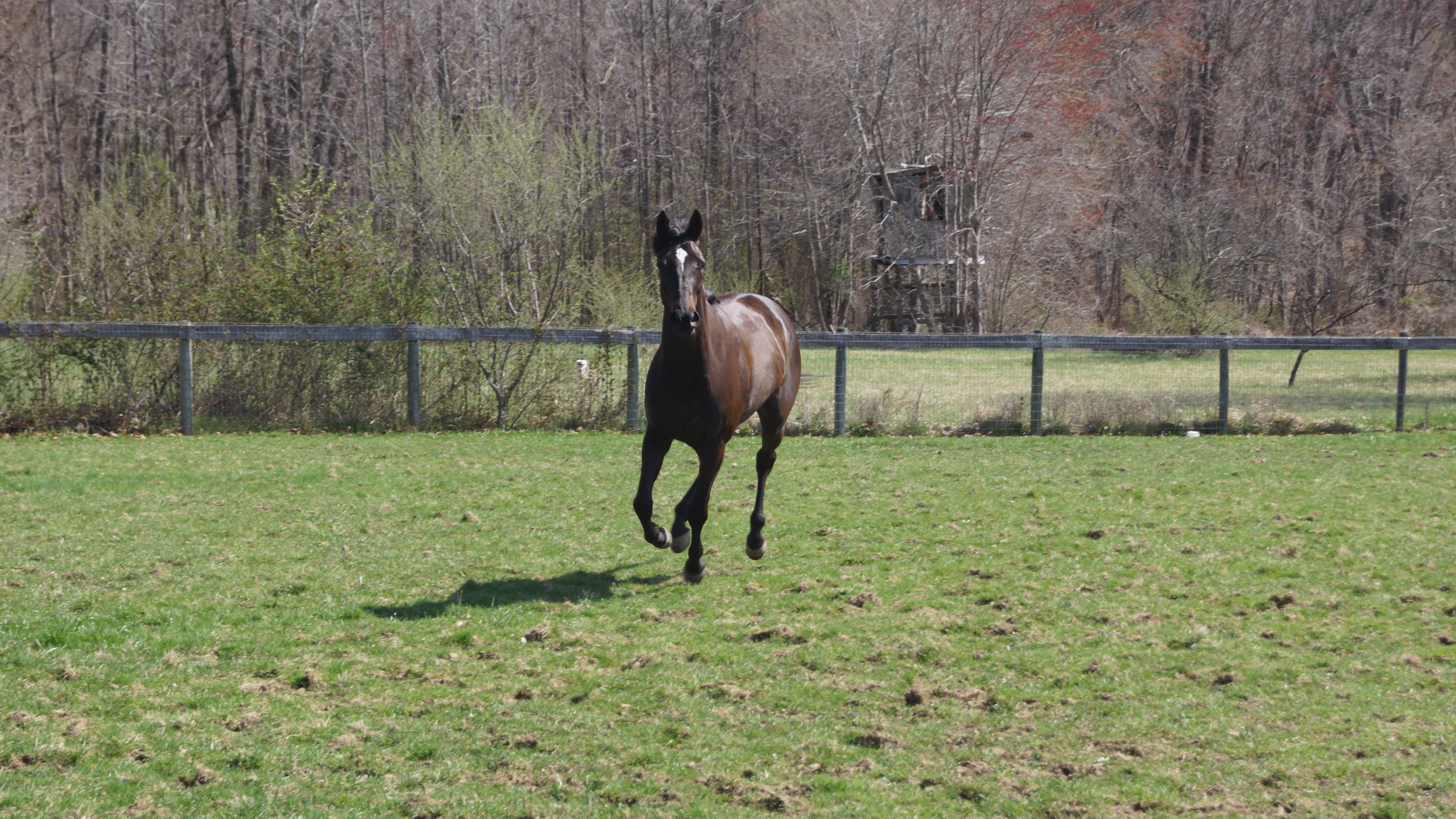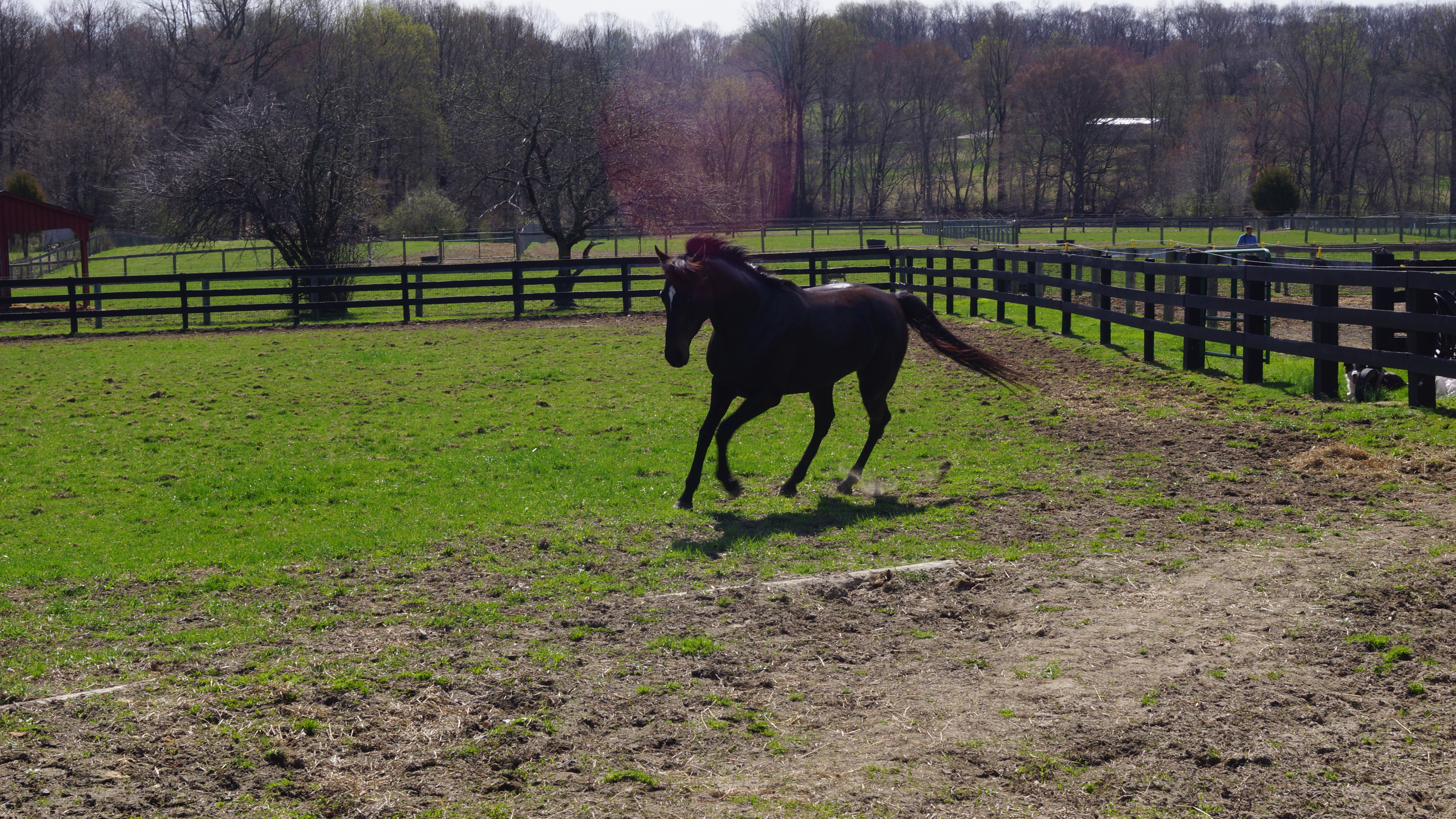 And finally turnout in her field which includes some staring around, running, and then grazing.