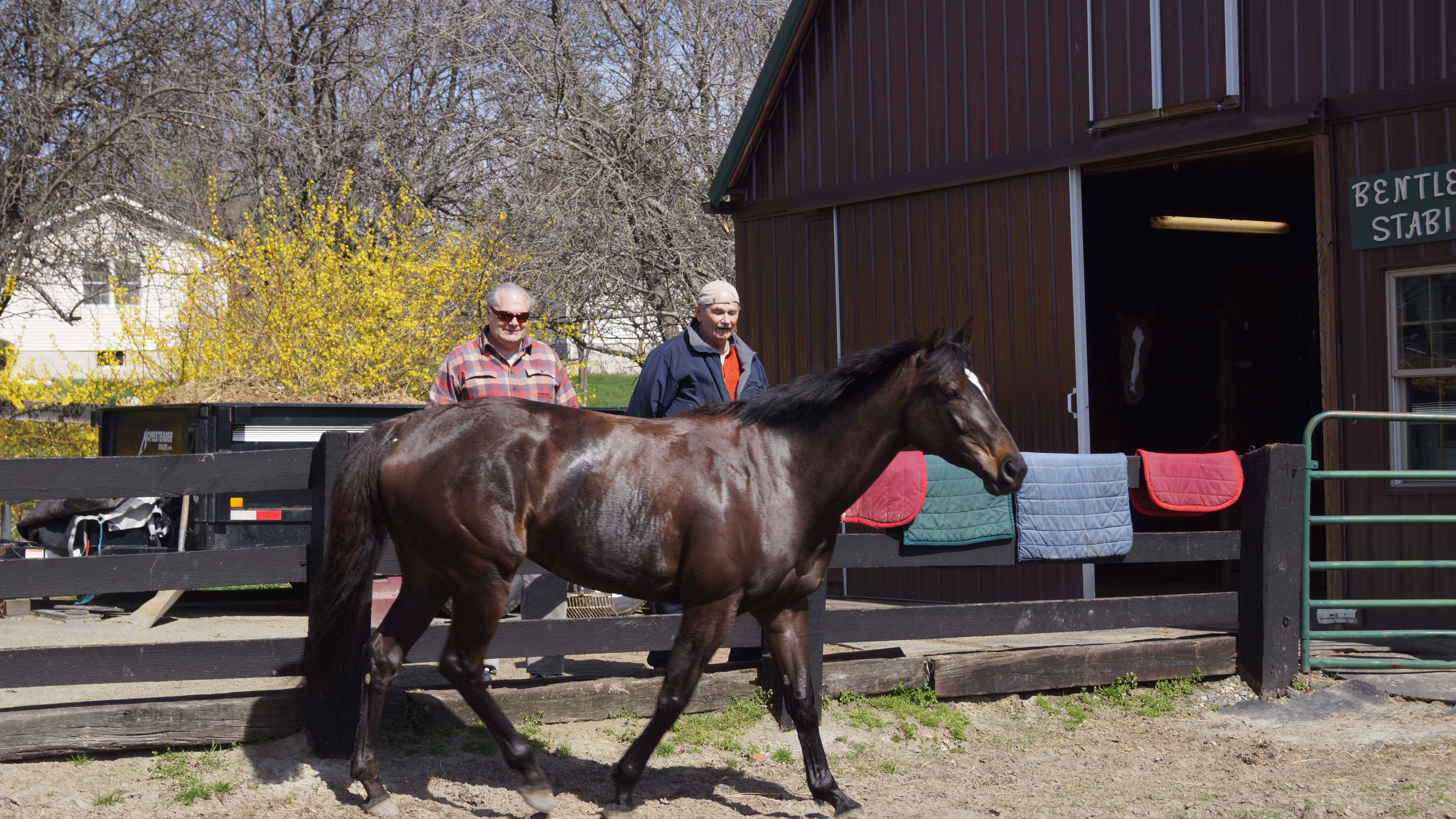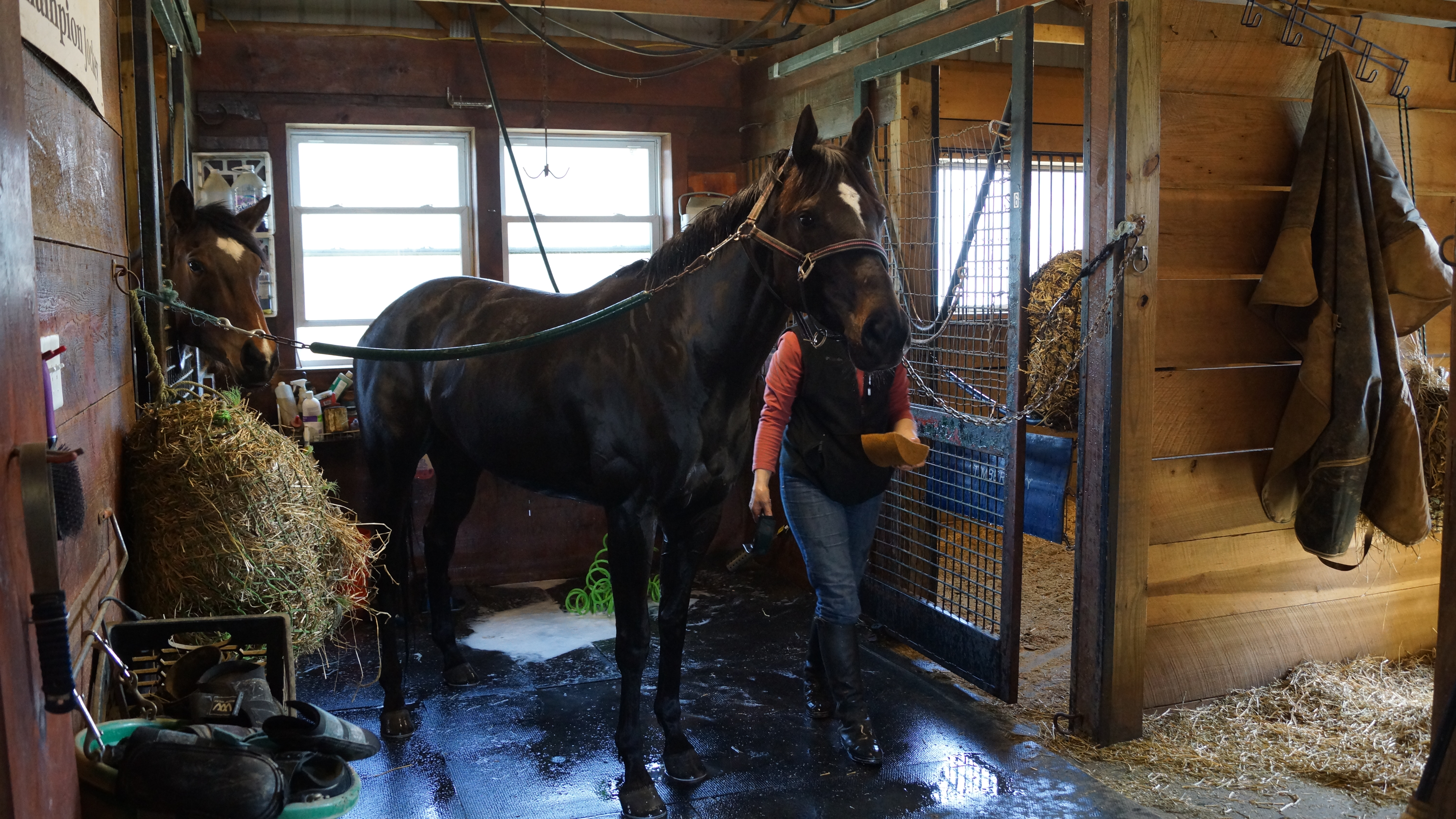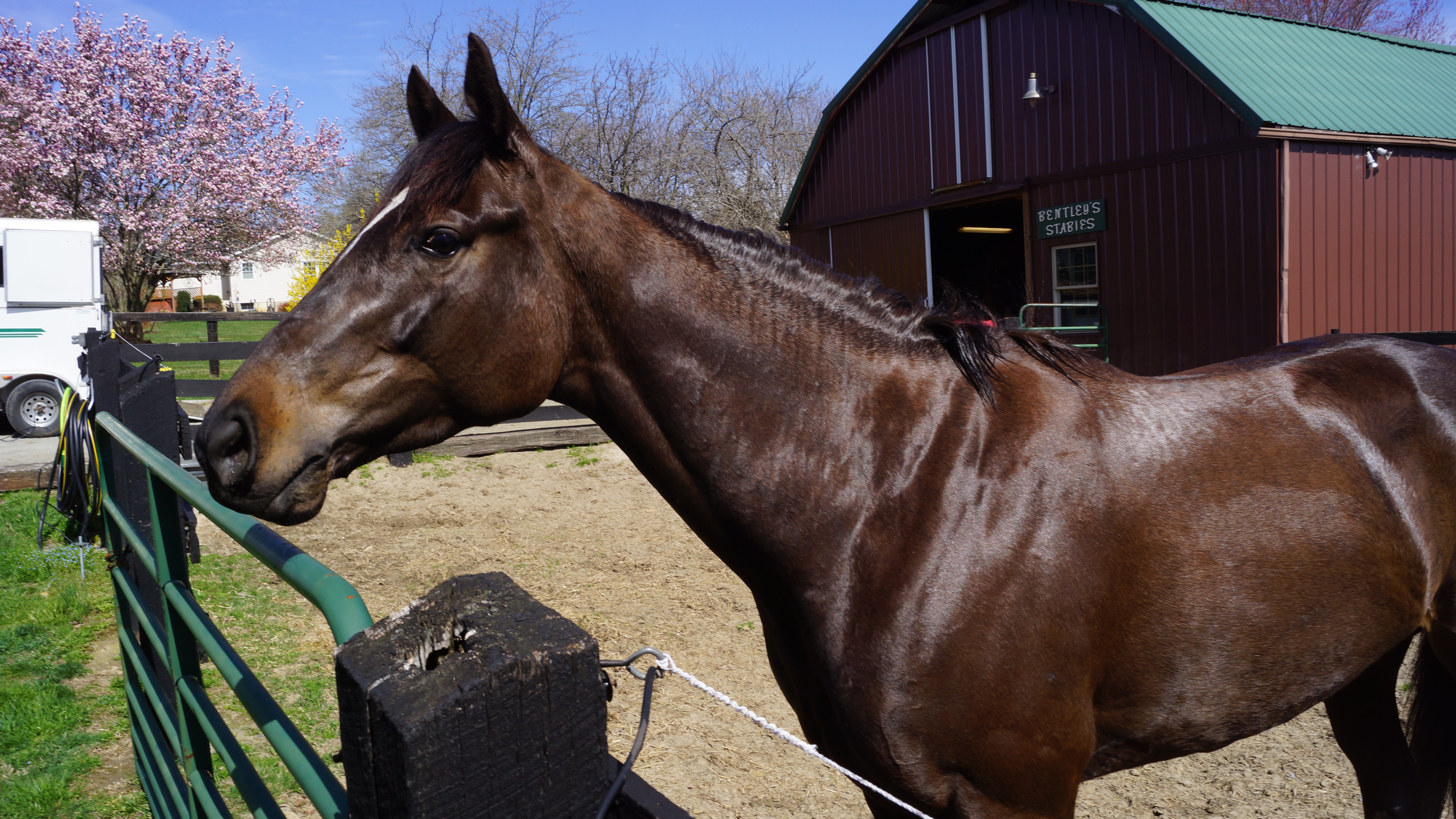 In order to be able to race, Sassy has to get a gate card to prove that she’s willing to go into and come out of the gate. When horses haven’t raced for a while, they are required to show that they are ok with the gate. Maryland doesn’t require the horse to break from the gate, but some of the other places we may race do, so we went with a work from the gate. After coming out of the gate, Sassy worked 3F on the dirt (which is where the gate is). She went in 39.0s.